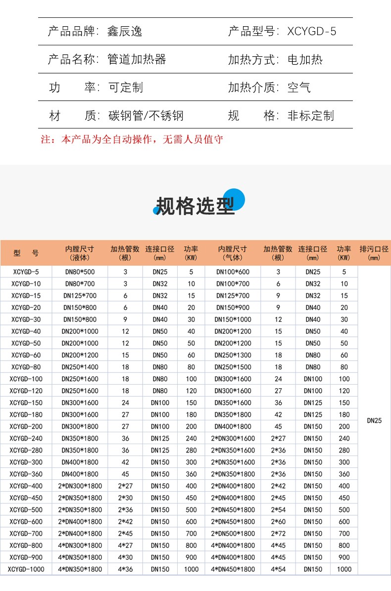 燃油自动启停不锈钢管道电加热器液体流体加热